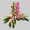 Como todos los trabajos especiales, este se mejora añadiéndole flores de una categoría superior (orquídea, anthurio u similar) y puede llevar algún elemento decorativo no floral. Sus dimensiones son 150*90.